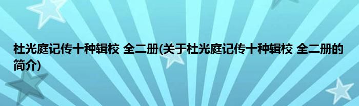 本文关于杜光庭记传十种辑校 全二册的简介就讲解完毕,希望对大家有所帮助。