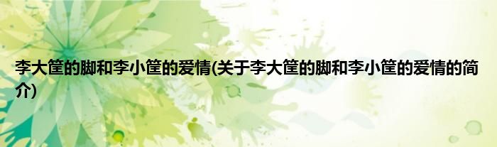 本文关于李大筐的脚和李小筐的爱情的简介就讲解完毕,希望对大家有所帮助。