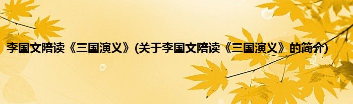 本文关于李国文陪读《三国演义》的简介就讲解完毕,希望对大家有所帮助。