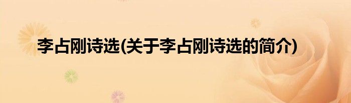 本文关于李占刚诗选的简介就讲解完毕,希望对大家有所帮助。