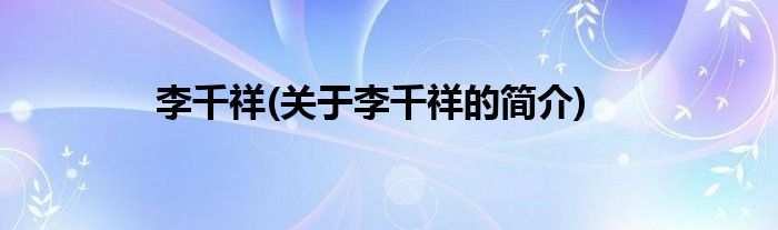 本文关于李千祥的简介就讲解完毕,希望对大家有所帮助。