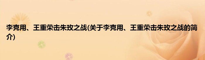 本文关于李克用、王重荣击朱玫之战的简介就讲解完毕,希望对大家有所帮助。