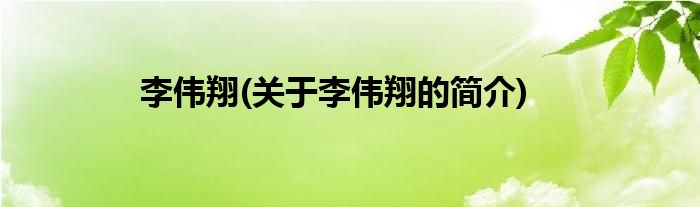 本文关于李伟翔的简介就讲解完毕,希望对大家有所帮助。