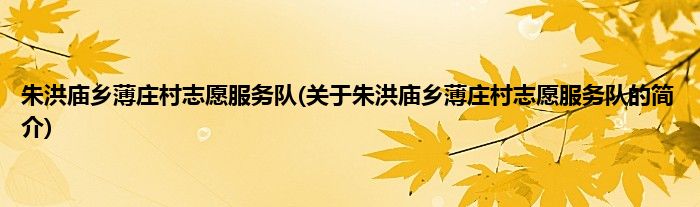 本文关于朱洪庙乡薄庄村志愿服务队的简介就讲解完毕,希望对大家有所帮助。