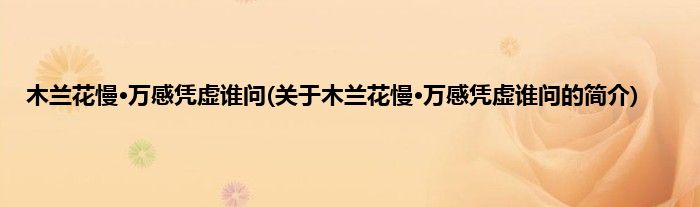 本文关于木兰花慢·万感凭虚谁问的简介就讲解完毕,希望对大家有所帮助。