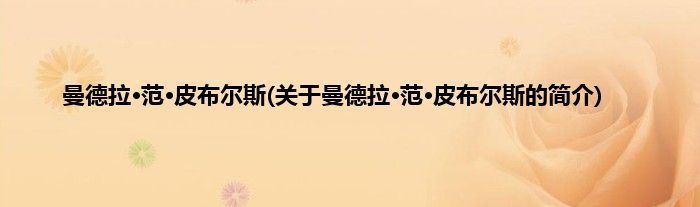 大家好,曼德拉·范·皮布尔斯,关于曼德拉·范·皮布尔斯的简介很多人还不知道,现在让我们一起来看看吧!