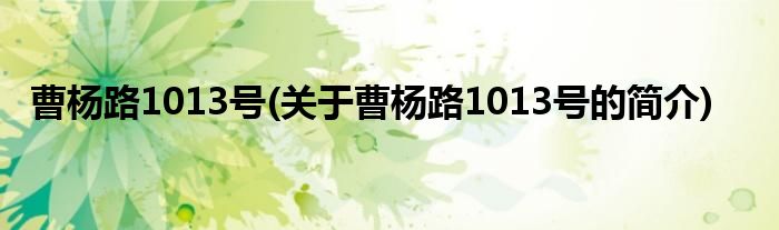 大家好,曹杨路1013号,关于曹杨路1013号的简介很多人还不知道,现在让我们一起来看看吧!