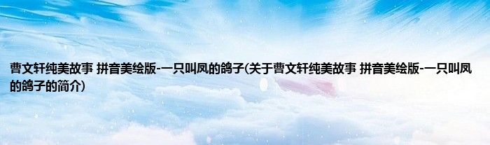 本文关于曹文轩纯美故事 拼音美绘版-一只叫凤的鸽子的简介就讲解完毕,希望对大家有所帮助。