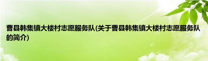本文关于曹县韩集镇大楼村志愿服务队的简介就讲解完毕,希望对大家有所帮助。