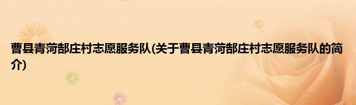 本文关于曹县青菏郜庄村志愿服务队的简介就讲解完毕,希望对大家有所帮助。