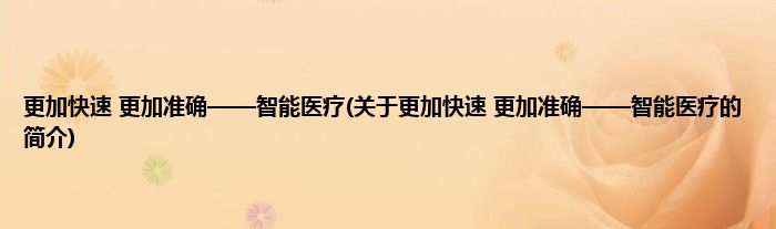 大家好,更加快速,更加准确——智能医疗,关于更加快速,更加准确——智能医疗的简介很多人还不知道,现在让我们一起来看看吧!