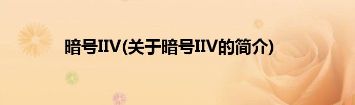 大家好,暗号IIV,关于暗号IIV的简介很多人还不知道,现在让我们一起来看看吧!