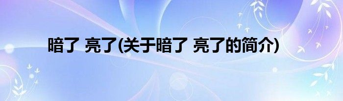 大家好,暗了,亮了,关于暗了,亮了的简介很多人还不知道,现在让我们一起来看看吧!