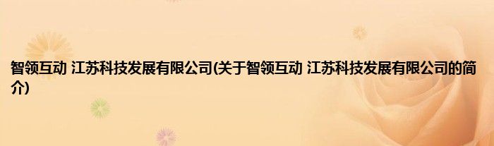 大家好,智领互动 江苏科技发展有限公司,关于智领互动 江苏科技发展有限公司的简介很多人还不知道,现在让我们一起来看看吧!