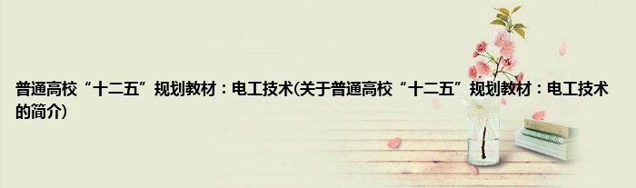 本文关于普通高校“十二五”规划教材:电工技术的简介就讲解完毕,希望对大家有所帮助。