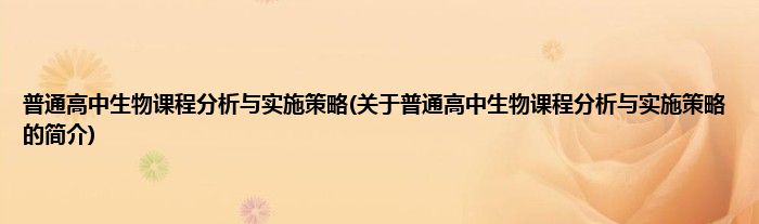 本文关于普通高中生物课程分析与实施策略的简介就讲解完毕,希望对大家有所帮助。