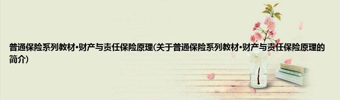 本文关于普通保险系列教材·财产与责任保险原理的简介就讲解完毕,希望对大家有所帮助。