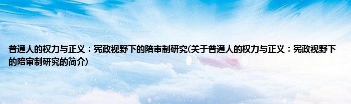 本文关于普通人的权力与正义:宪政视野下的陪审制研究的简介就讲解完毕,希望对大家有所帮助。