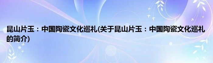 本文关于昆山片玉:中国陶瓷文化巡礼的简介就讲解完毕,希望对大家有所帮助。