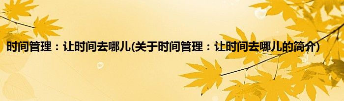 大家好,时间管理:让时间去哪儿,关于时间管理:让时间去哪儿的简介很多人还不知道,现在让我们一起来看看吧!