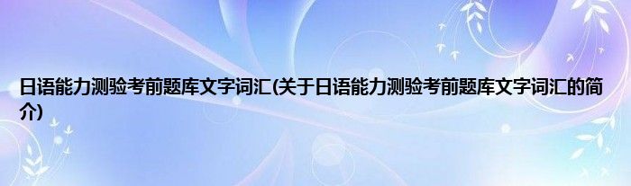 日语能力测验考前题库文字词汇(关于日语能力测验考前题库文字词汇的简介)