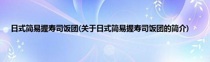 本文关于日式简易握寿司饭团的简介就讲解完毕,希望对大家有所帮助。