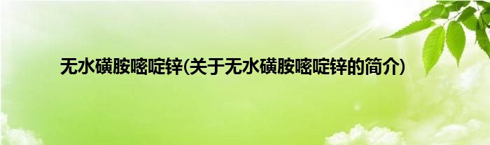 本文关于无水磺胺嘧啶锌的简介就讲解完毕,希望对大家有所帮助。