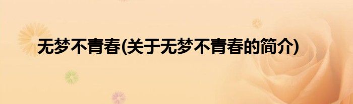 本文关于无梦不青春的简介就讲解完毕,希望对大家有所帮助。