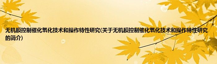 本文关于无机膜控制催化氧化技术和操作特性研究的简介就讲解完毕,希望对大家有所帮助。