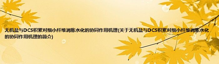 大家好,无机盐与DCS积累对细小纤维润胀水化的协同作用机理,关于无机盐与DCS积累对细小纤维润胀水化的协同作用机理的简介很多人还不知道,现在让我们一起来看看吧!