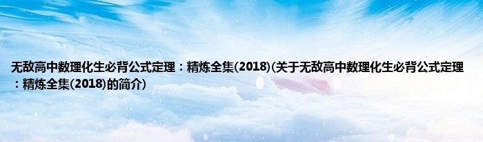 本文关于无敌高中数理化生必背公式定理:精炼全集(2018)的简介就讲解完毕,希望对大家有所帮助。