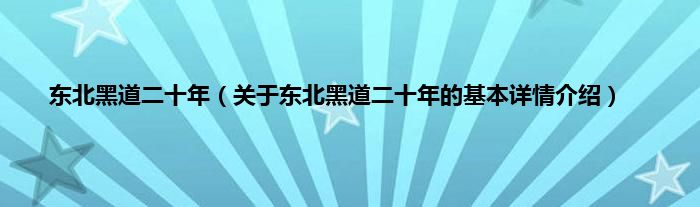 本文关于东北黑道二十年的基本详情介绍就讲解完毕,希望对大家有所帮助。