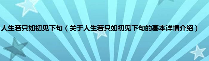 本文关于人生若只如初见下句的基本详情介绍就讲解完毕,希望对大家有所帮助。