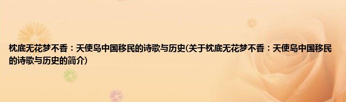 本文关于枕底无花梦不香:天使岛中国移民的诗歌与历史的简介就讲解完毕,希望对大家有所帮助。