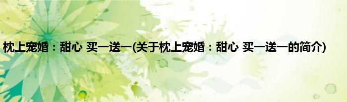 大家好,枕上宠婚:甜心,买一送一,关于枕上宠婚:甜心,买一送一的简介很多人还不知道,现在让我们一起来看看吧!