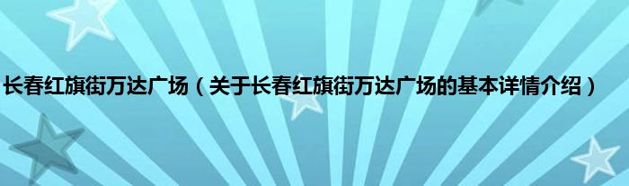 本文关于长春红旗街万达广场的基本详情介绍就讲解完毕,希望对大家有所帮助。