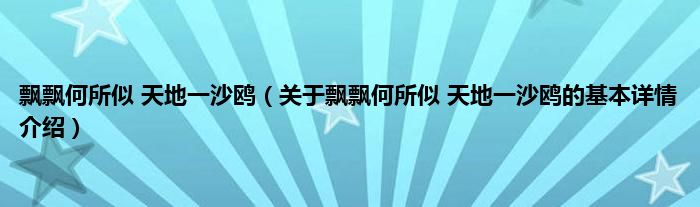 本文关于飘飘何所似 天地一沙鸥的基本详情介绍就讲解完毕,希望对大家有所帮助。