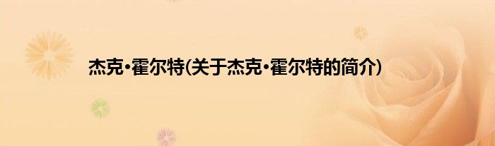 大家好,杰克·霍尔特,关于杰克·霍尔特的简介很多人还不知道,现在让我们一起来看看吧!