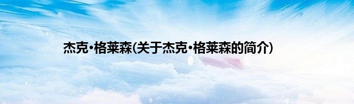 大家好,杰克·格莱森,关于杰克·格莱森的简介很多人还不知道,现在让我们一起来看看吧!