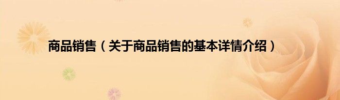 本文关于商品销售的基本详情介绍就讲解完毕,希望对大家有所帮助。