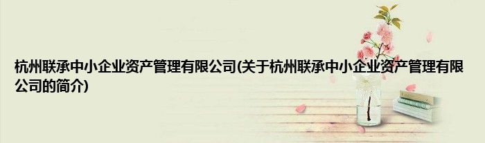 本文关于杭州联承中小企业资产管理有限公司的简介就讲解完毕,希望对大家有所帮助。