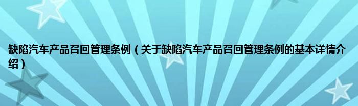 本文关于缺陷汽车产品召回管理条例的基本详情介绍就讲解完毕,希望对大家有所帮助。