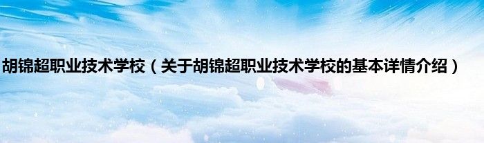 本文关于胡锦超职业技术学校的基本详情介绍就讲解完毕,希望对大家有所帮助。