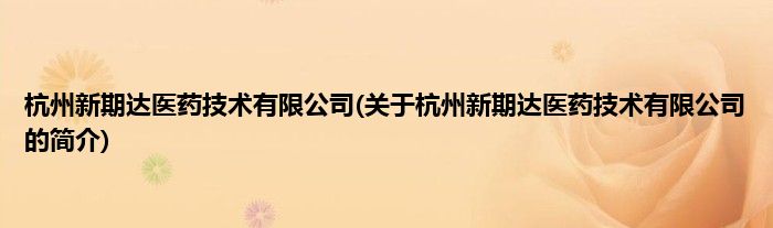 本文关于杭州新期达医药技术有限公司的简介就讲解完毕,希望对大家有所帮助。
