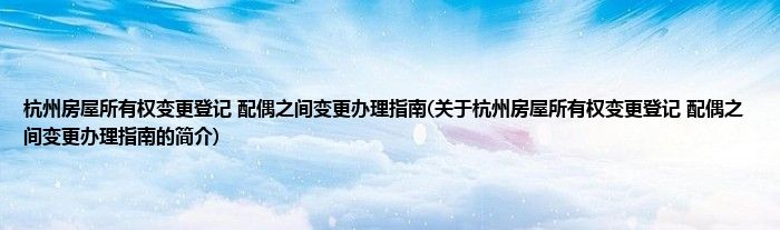 本文关于杭州房屋所有权变更登记 配偶之间变更办理指南的简介就讲解完毕,希望对大家有所帮助。