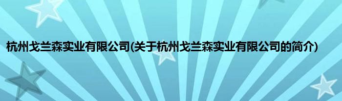 本文关于杭州戈兰森实业有限公司的简介就讲解完毕,希望对大家有所帮助。