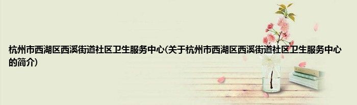本文关于杭州市西湖区西溪街道社区卫生服务中心的简介就讲解完毕,希望对大家有所帮助。