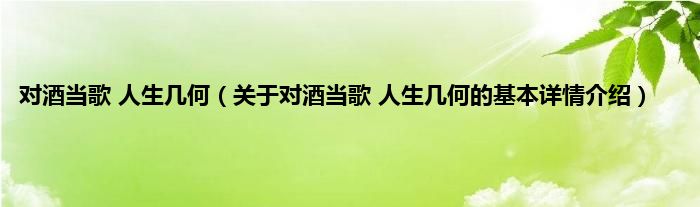 本文关于对酒当歌 人生几何的基本详情介绍就讲解完毕,希望对大家有所帮助。