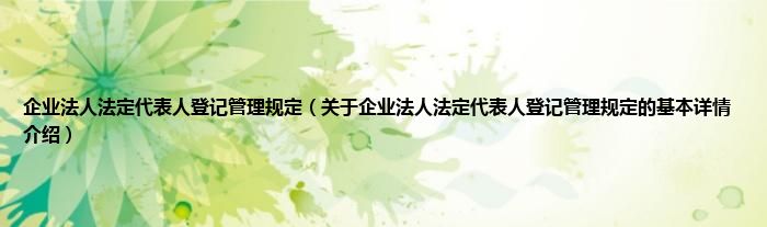 本文关于企业法人法定代表人登记管理规定的基本详情介绍就讲解完毕,希望对大家有所帮助。
