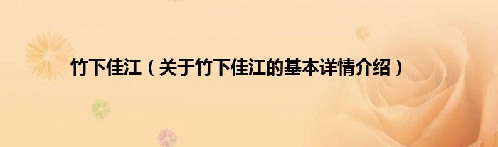本文关于竹下佳江的基本详情介绍就讲解完毕,希望对大家有所帮助。